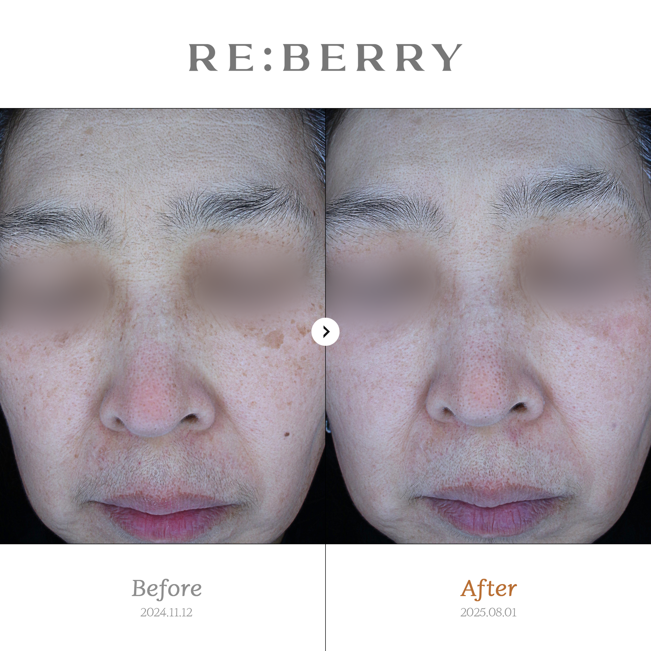 염증성 기미 흑자 색소 치료후 개선된 모습