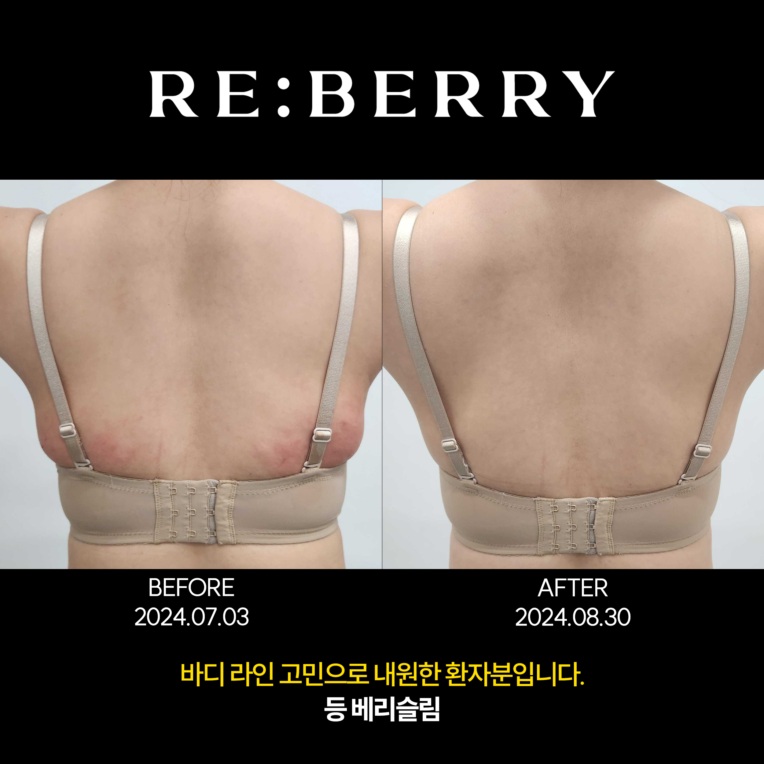 바디 패키지 후 등 군살 라인 정리된 모습