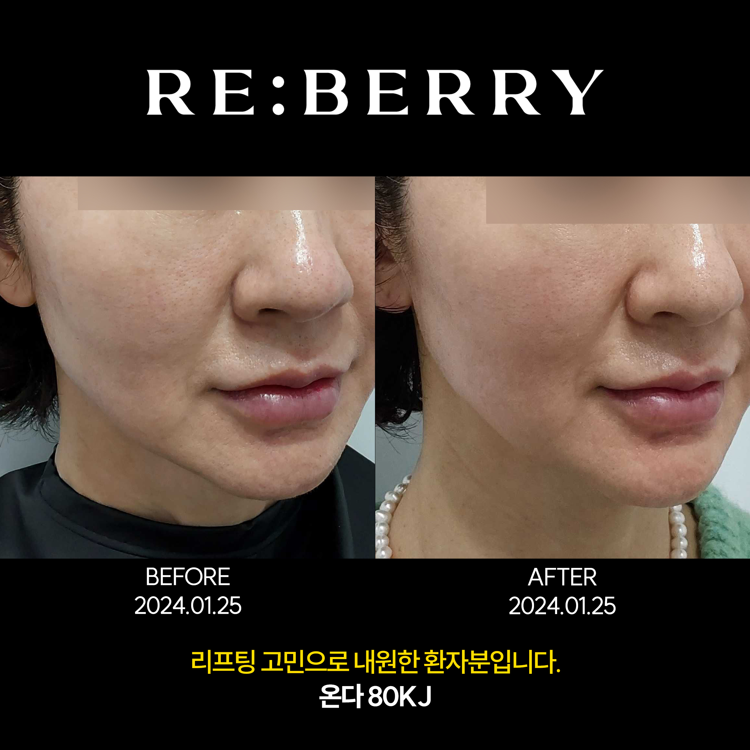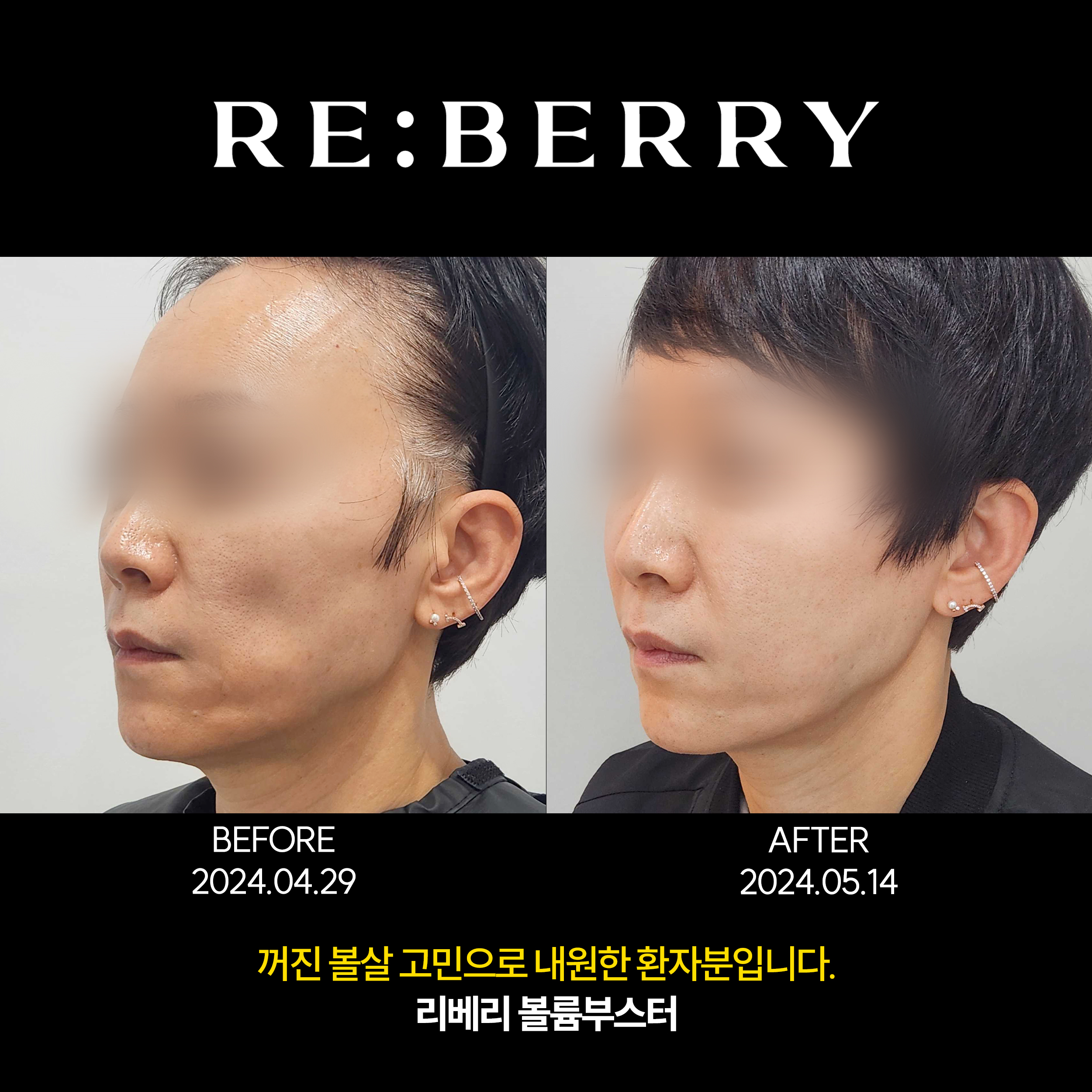 볼 꺼짐 부위 리베리 볼륨부스터 시술 후 모습