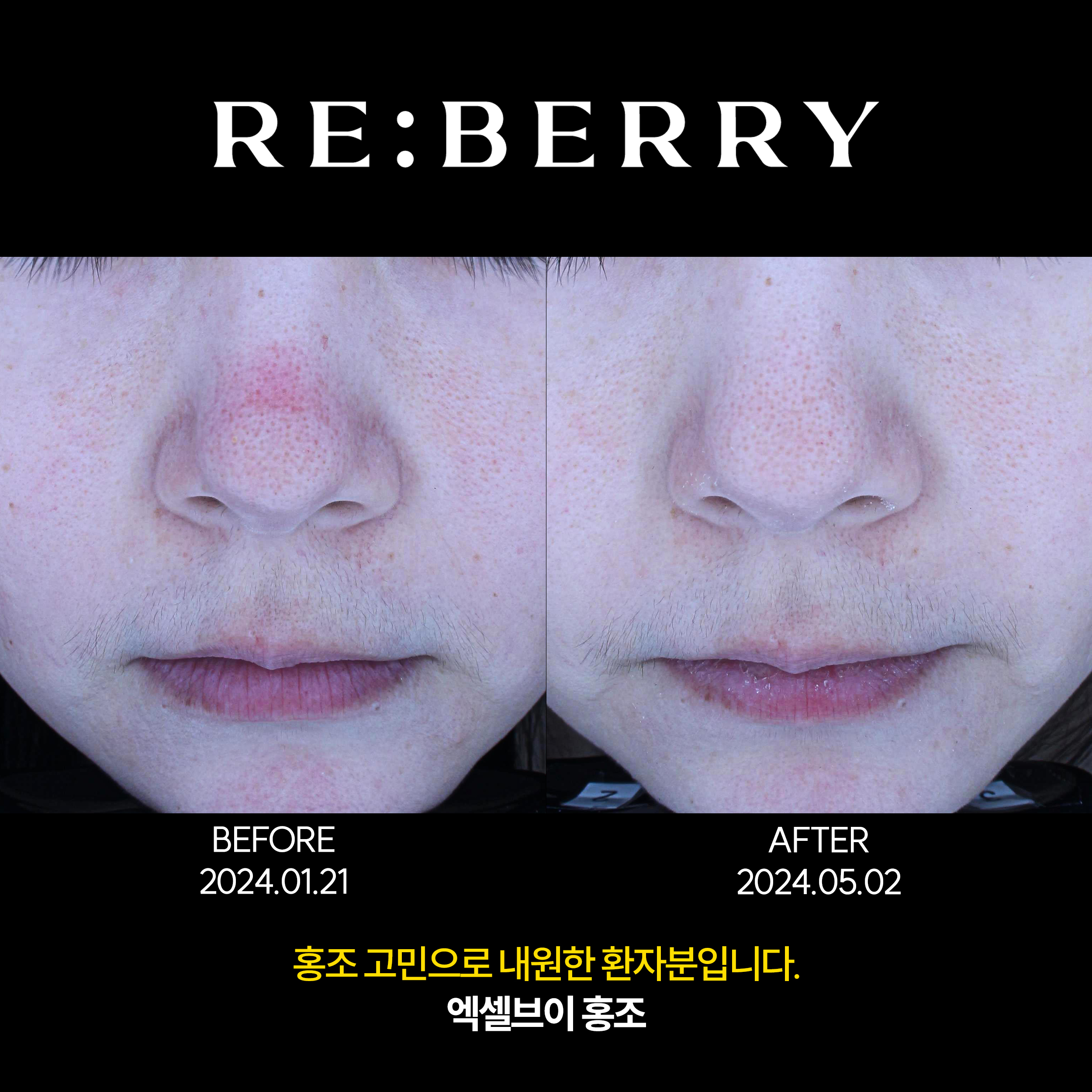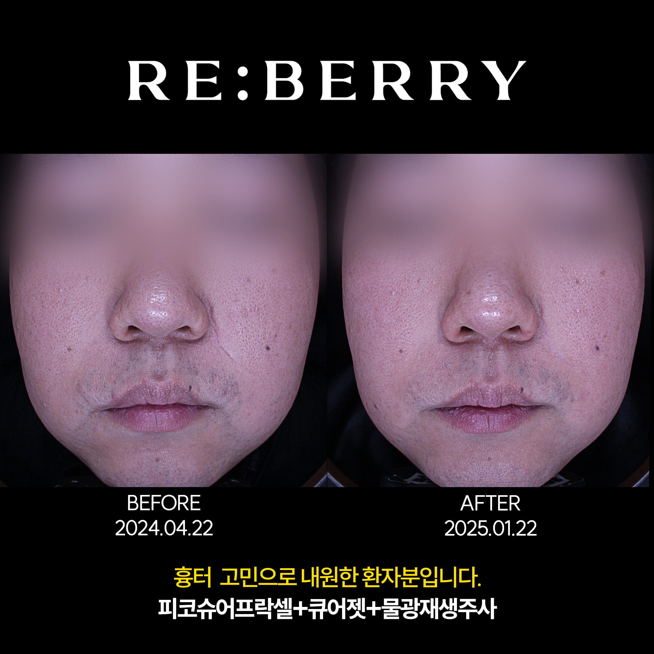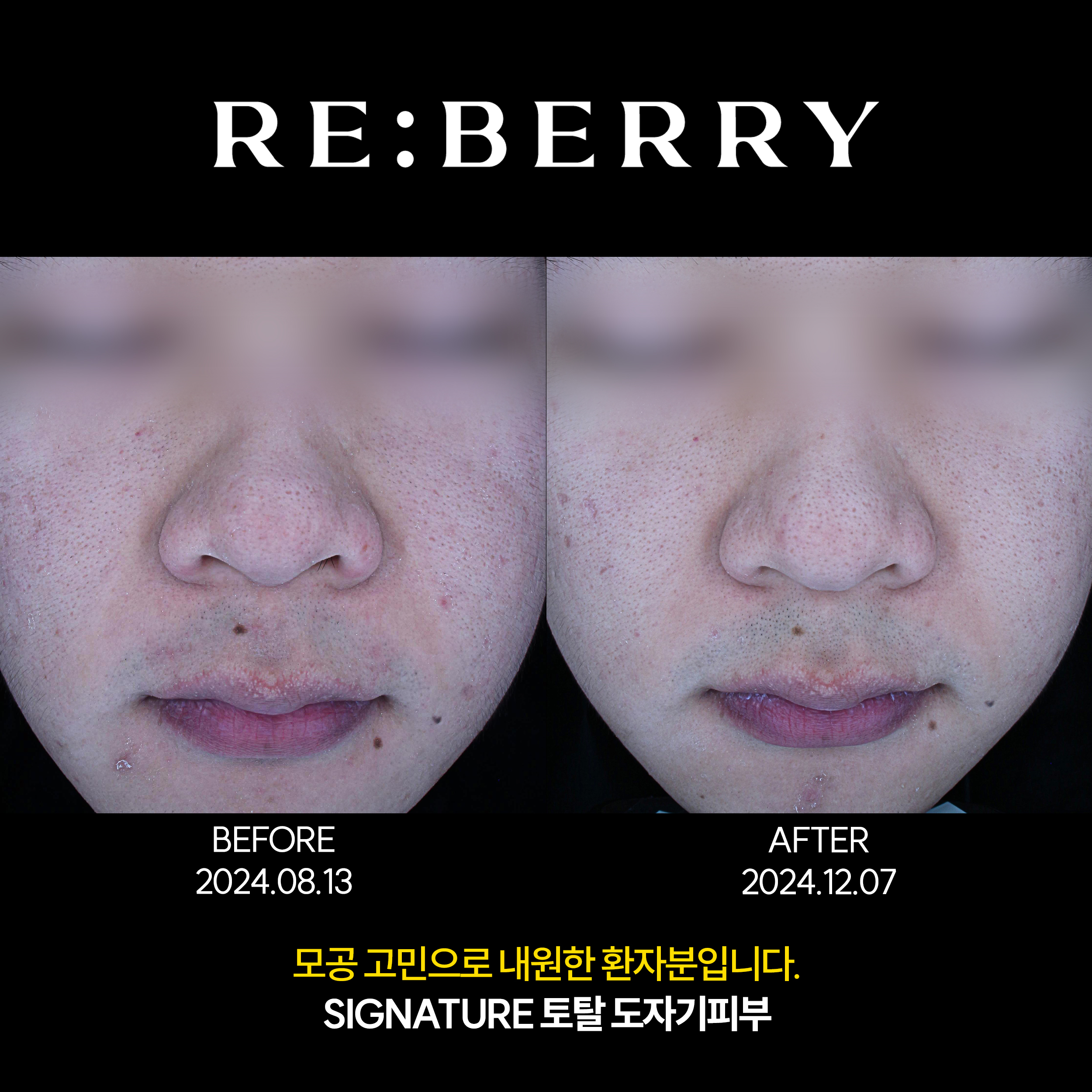 넓어진 모공으로 인해 치료 후 호전 된 모습