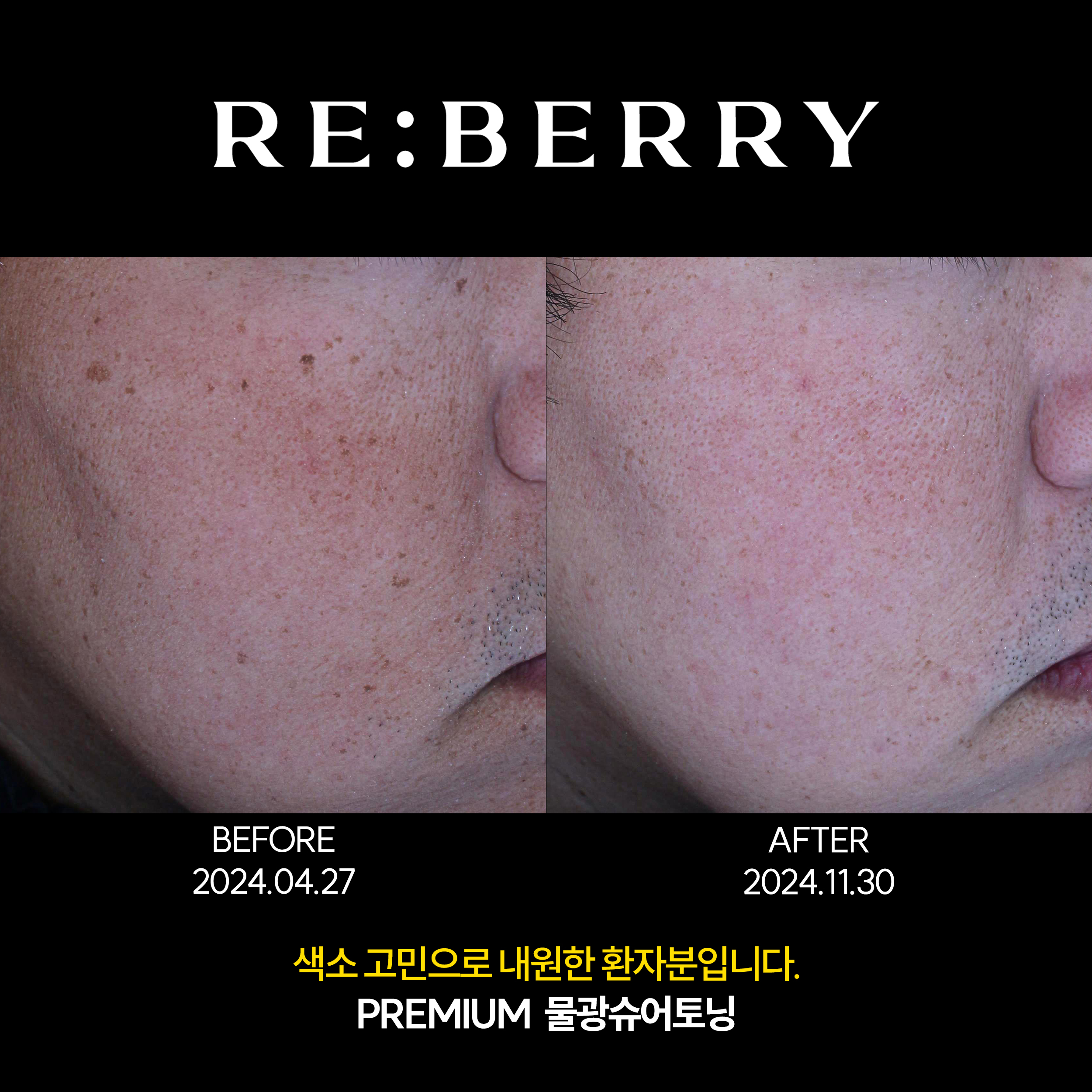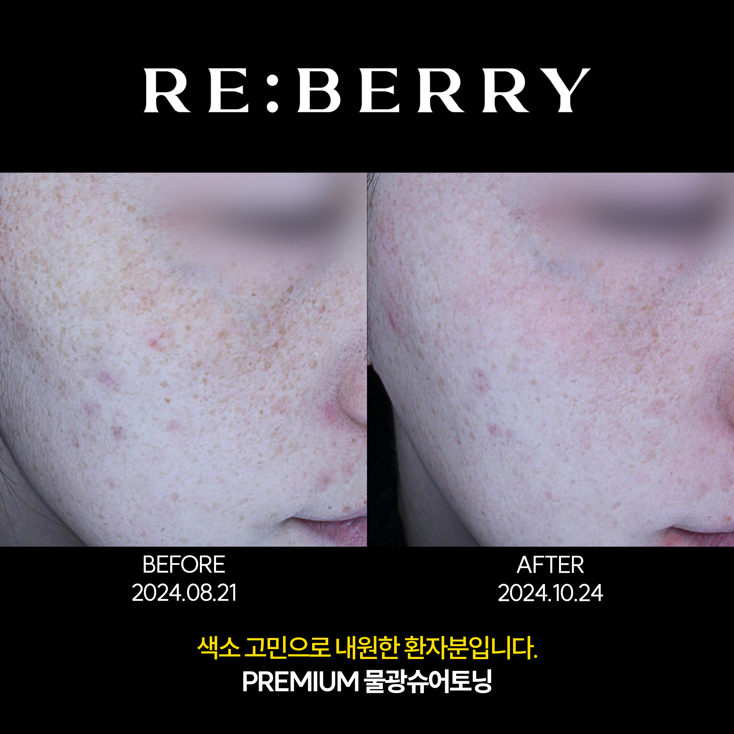 토닝 치료 후 맑아지고 깨끗해진 피부